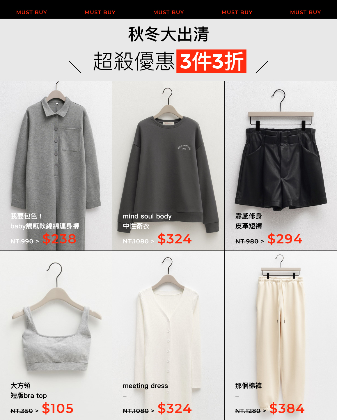 🤍秋冬大出清 3件3折